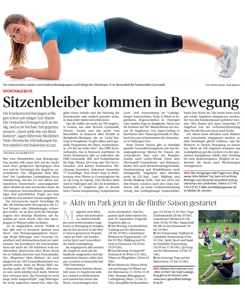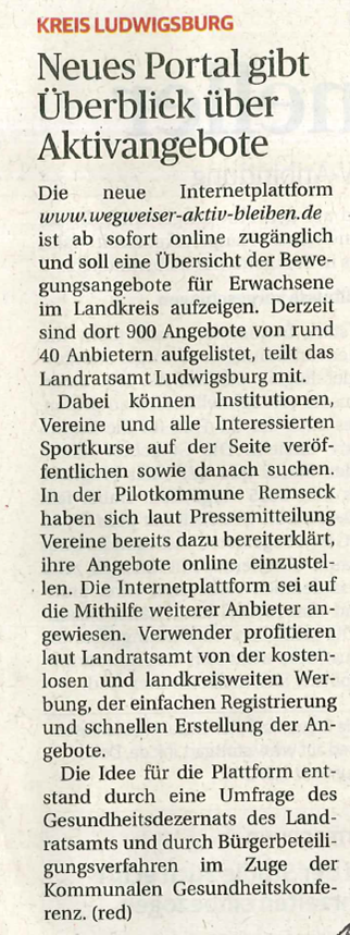 Ludwigsburger Kreiszeitung "Neues Portal gibt Überblick über Aktivangebote"