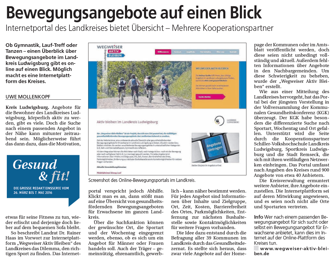 Ludwigsburger Kreiszeitung "Neues Portal gibt Überblick über Aktivangebote"